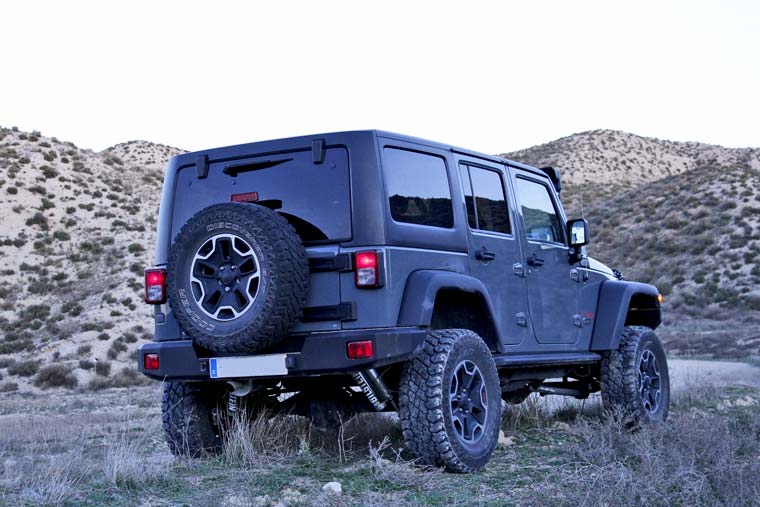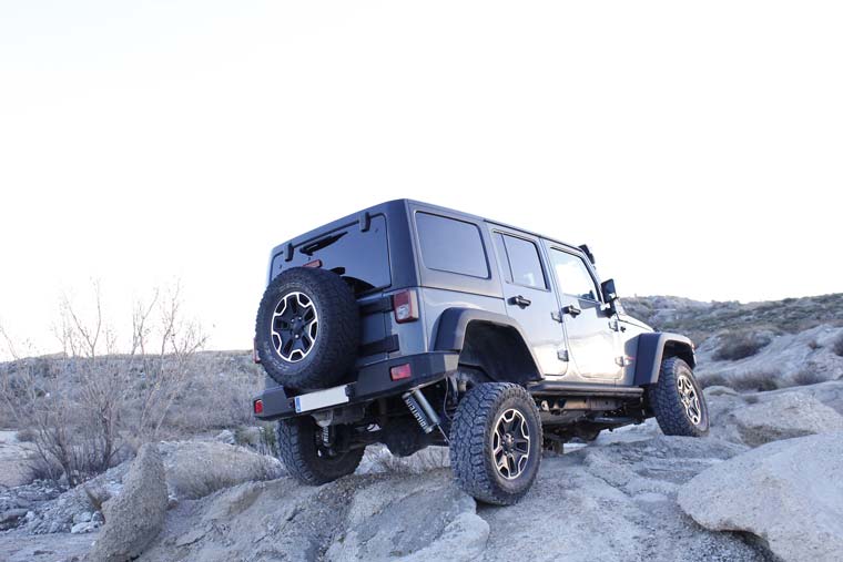 Suspensión delantera eje rígido con muelles, amortiguadores y barra estabilizadora desconectable, y trasera eje rígido, muelles, amortiguadores y barra estabilizadora, y es aquí precisamente donde radica el arma secreta de este Jeep Wrangler Rubicon.