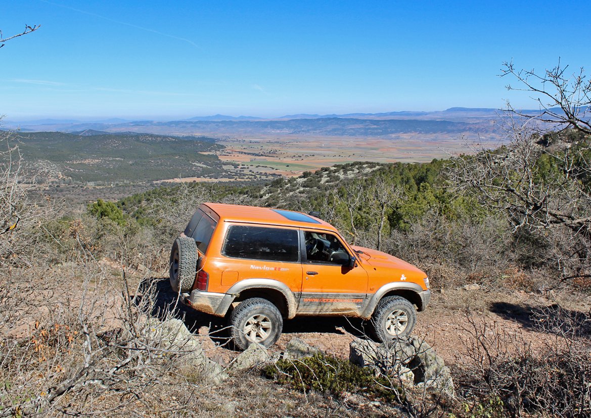 Después descendemos para retomar la pista por la que, entre bosques de pinos y carrascas, nos lleva hasta el Alto de la Muerta, a 1.218 metros de altura, y de nuevo magnificas vistas del norte de la Comarca del Jiloca y Calamocha, entre sierras y campos de cultivo.