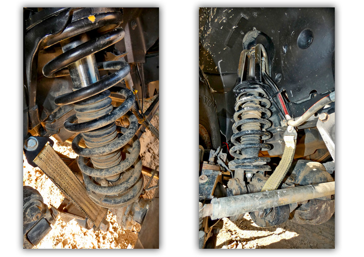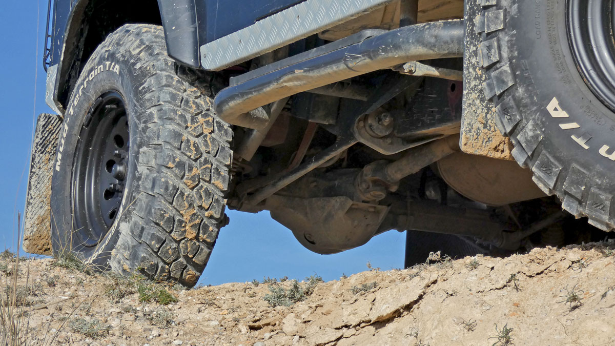 Para preservar la integridad de los amortiguadores cuando se rueda a buen ritmo por las pistas marroquís, se han instalados limitadores de extensión que permiten regular el recorrido en extensión de los amortiguadores evitando que lleguen a estirar al máximo y provocar roturas.