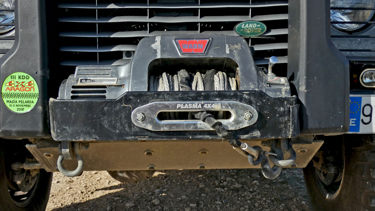 Para asegurar el rescate de compañeros y auto rescate, ya sea en las dunas o en los montes, el Defender va equipado con un cabrestante eléctrico WARN 9.5 Ti de 4.310 Kg de capacidad de arrastre, 12 V, termométrico, embrague y freno, mando de cable 3,7 m, caja de relés incorporada, y cable sintético.