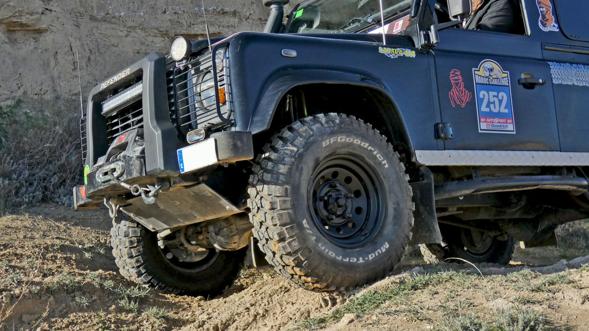 Sobre estas llantas van montados unos efectivos neumáticos BFGoodrich KM2 Mud Terrain, en medida 255/85R16, diseñados para el trato duro, 80% offroad, 20% asfalto, es ideal para las travesías africanas, soportan muy bien las piedras cortantes de las pistas y las bajas presiones a la hora de circular por las dunas.