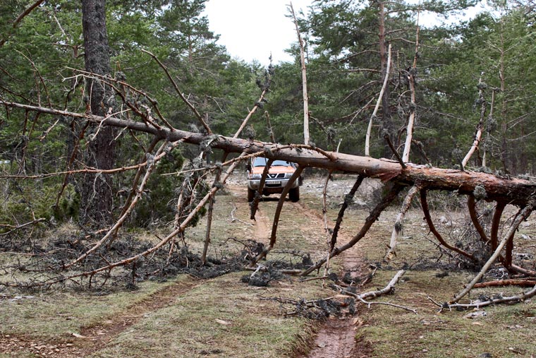 Alcanzado la cumbre de la pista, vamos descendiendo lentamente, saboreando el fantástico entorno, esquivando una enorme cantidad de pinos caídos por las fuertes nevadas del invierno hasta nuestro próximo destino, uno de los pueblos más bonitos de España, Albarracín.