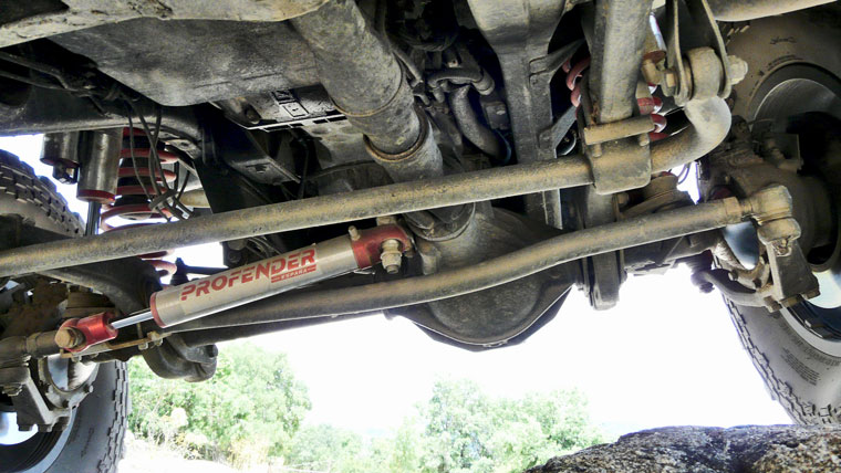Obviamente, las dimensiones de las nuevas ruedas afectan a otros elementos de serie, como es la dirección. La caña de dirección es la de serie, aunque con alguna pequeña modificación por la instalación de body lift para elevar la carrocería. La caja de dirección es la de origen, así como el brazo pitman.