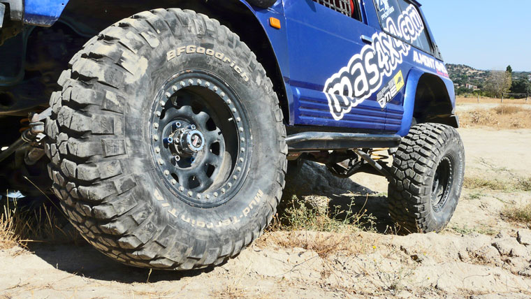 Sobre las llantas tenemos unos neumáticos BF GOODRICH MUD TERRAIN KM2 en medida 37×12,5 R17, de sobra conocidos por todos, por lo que no nos extenderemos en comentar sus características y cualidades.