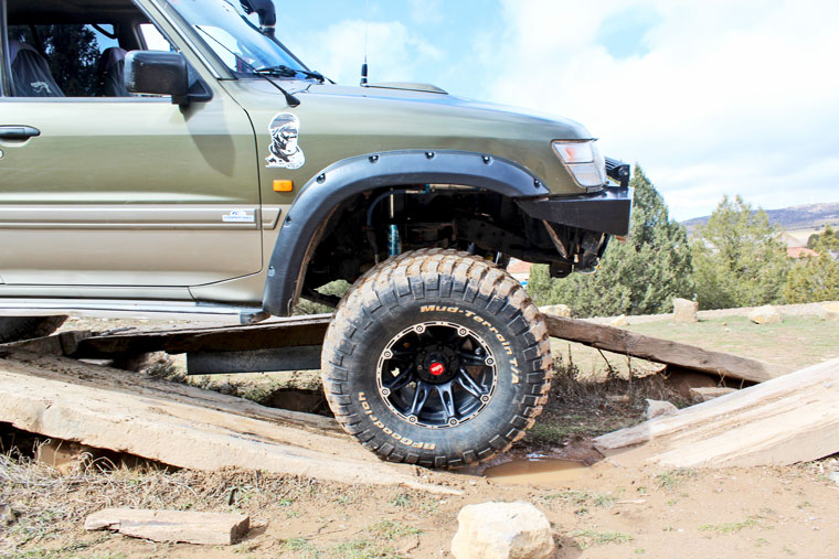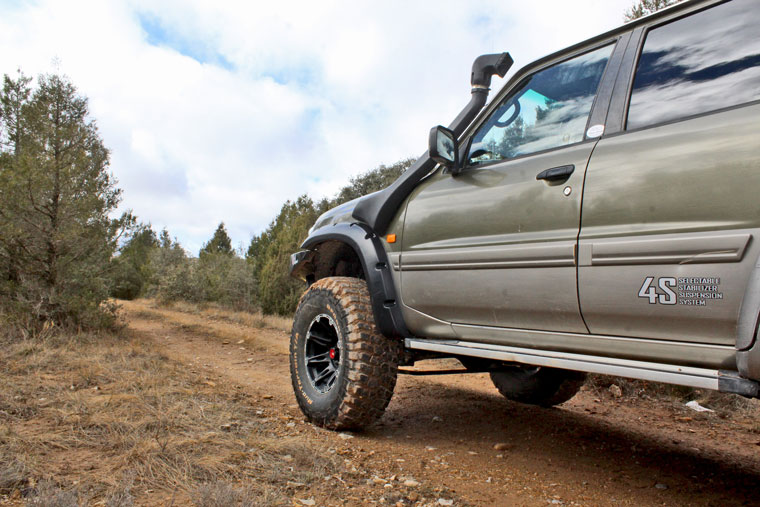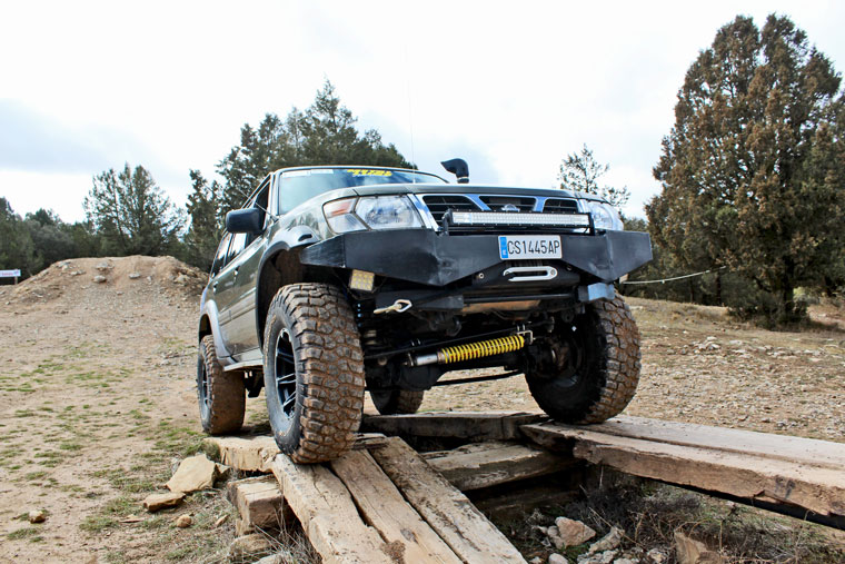 Exteriormente la preparación 4×4 se centra fundamentalmente en los parachoques. A pesar de la altura libre al suelo, y los generosos neumáticos, se ha buscado aumentar la bondad de los ángulos de entrada y salida del Patrol, de modo la capacidad para el franqueo de obstáculos alcanza un gran nivel.