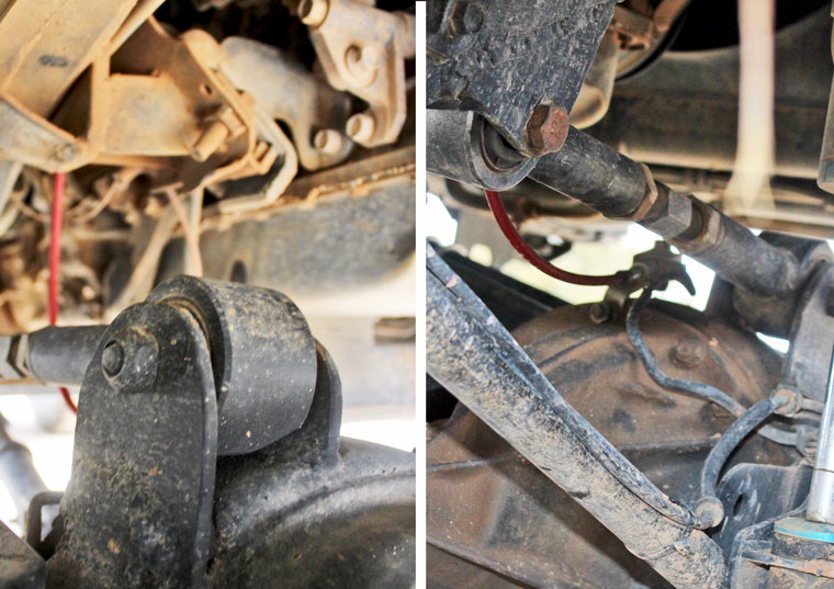 También se ha trabajado sobre las barras Panhard, que ha habido que transformarlas en regulables en el torno. Con el aumento de recorrido en la suspensión delantera se ha tenido que eliminar la estabilizadora. Sobre el eje se han soldado, a cada lado, dos piezas de hierro para actuar como topes de compresión.
