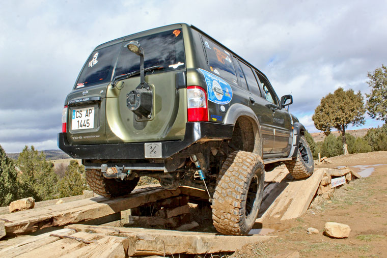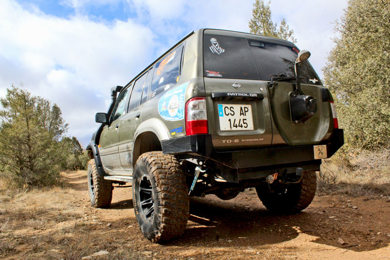 El objetivo de esta preparación es sacar todo el potencial offroad del Patrol GR Y61, maximizando todas sus aptitudes todo terreno, tanto el franqueo de obstáculos en zonas trialeras, pistas quebradas por el hielo y el agua en la montaña, incluso las pistas rápidas de Marruecos y las dunas. Dada la capacidad de los pasos de rueda del GR, se pueden montar neumáticos de generosas dimensiones sin problemas, así que Luis no dudo en montar unas BF GOODRICH MUD TERRAIN de 37×12,5×17 sobre unas preciosas llantas FÓRMULA WHEEL de 17” Y ET -35, proporcionando una altura libre al suelo que hace innecesario la instalación de protecciones de bajos, dotando al Patrol de una capacidad de franquear obstáculos enorme, y una “flotación” sobre superficies de barro o arena espectacular con los neumáticos deshinchados, que sumada a la enorme tracción de la transmisión del GR, solo sus dimensiones, y un terreno absolutamente impracticable pueden pararle.