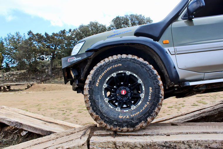El objetivo de esta preparación es sacar todo el potencial offroad del Patrol GR Y61, maximizando todas sus aptitudes todo terreno, tanto el franqueo de obstáculos en zonas trialeras, pistas quebradas por el hielo y el agua en la montaña, incluso las pistas rápidas de Marruecos y las dunas. Dada la capacidad de los pasos de rueda del GR, se pueden montar neumáticos de generosas dimensiones sin problemas, así que Luis no dudo en montar unas BF GOODRICH MUD TERRAIN de 37×12,5×17 sobre unas preciosas llantas FÓRMULA WHEEL de 17” Y ET -35, proporcionando una altura libre al suelo que hace innecesario la instalación de protecciones de bajos, dotando al Patrol de una capacidad de franquear obstáculos enorme, y una “flotación” sobre superficies de barro o arena espectacular con los neumáticos deshinchados, que sumada a la enorme tracción de la transmisión del GR, solo sus dimensiones, y un terreno absolutamente impracticable pueden pararle.