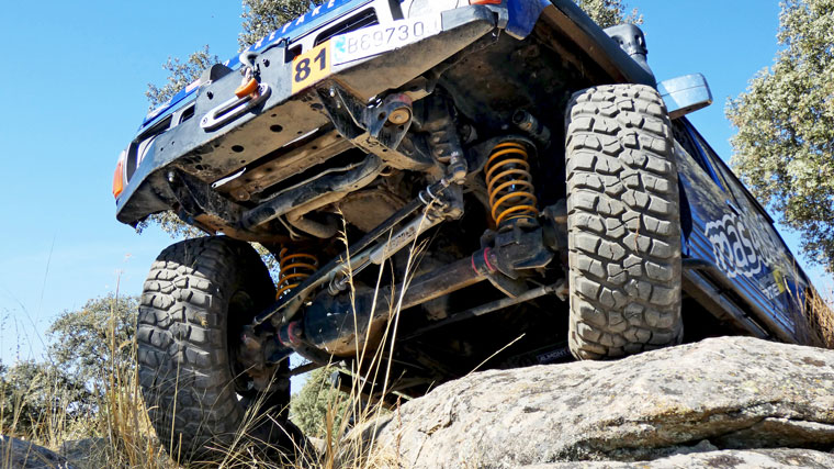 El paso de zonas trialeras y rocosas de grandes proporciones, plantea necesariamente montar unas ruedas de generosas dimensiones, 37”, para superarlos, lo que conlleva reformas en el sistema de dirección, así pues se sustituyen las barras de dirección por otras ATOMIC HD reforzadas, y ambas regulables sin necesidad de ser desmontadas, el kit incluye rótulas reforzadas.