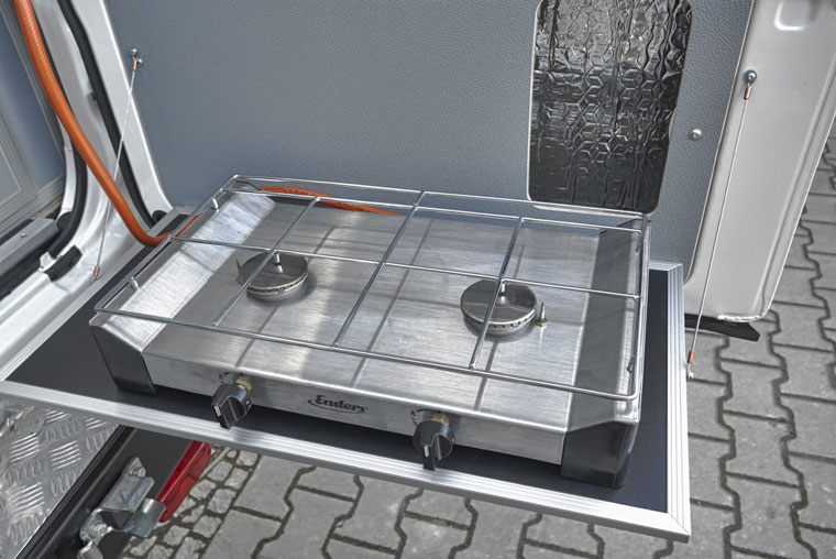 -Cocina diesel Webasto X100, en lugar de estufa de gas. Con ajuste de la combustión hasta 1.500 m sobre el nivel del mar.