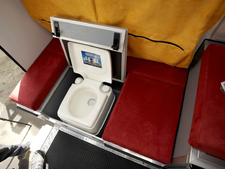 -Caja de asiento con inodoro químico de 10 litros discretamente alojado