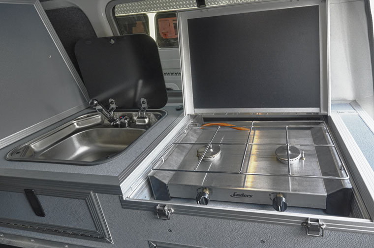 -Cocina portátil en la parte trasera firmemente integrada en la caja de carga superior