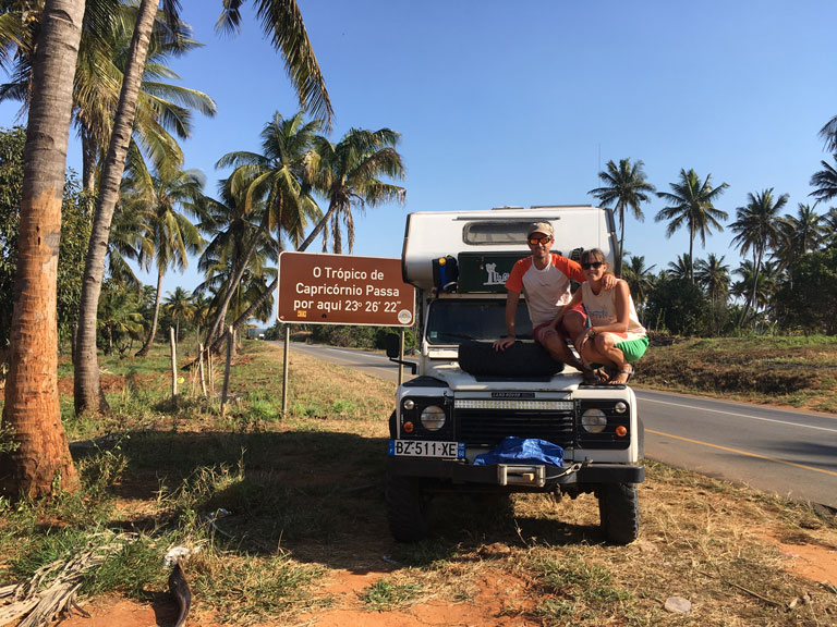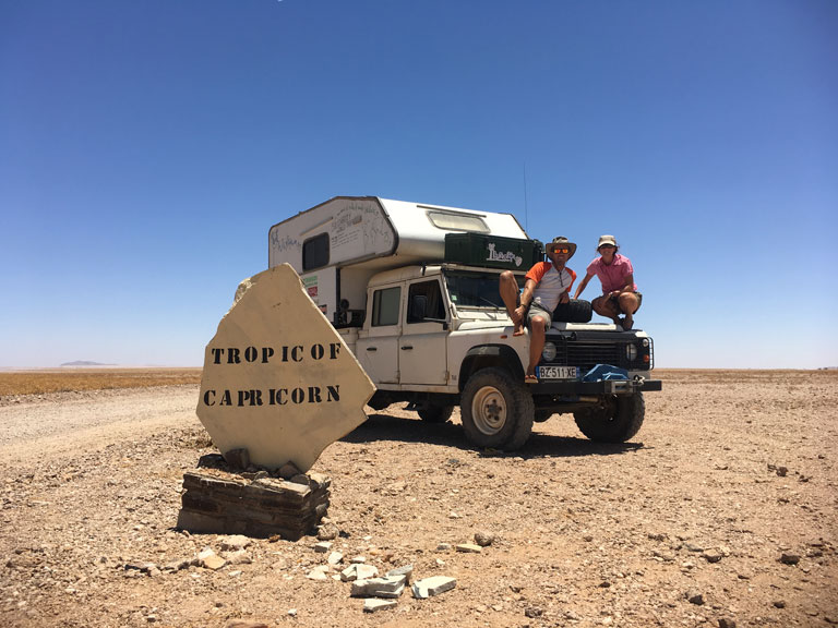 Nuestro Land Rover ha rebasado la línea del Ecuador y ha cruzado unas quince veces los Trópicos de Cáncer y Capricornio, alcanzando el vértice austral de los continentes africano y americano (cabo de Agujas y cabo Froward, respectivamente).