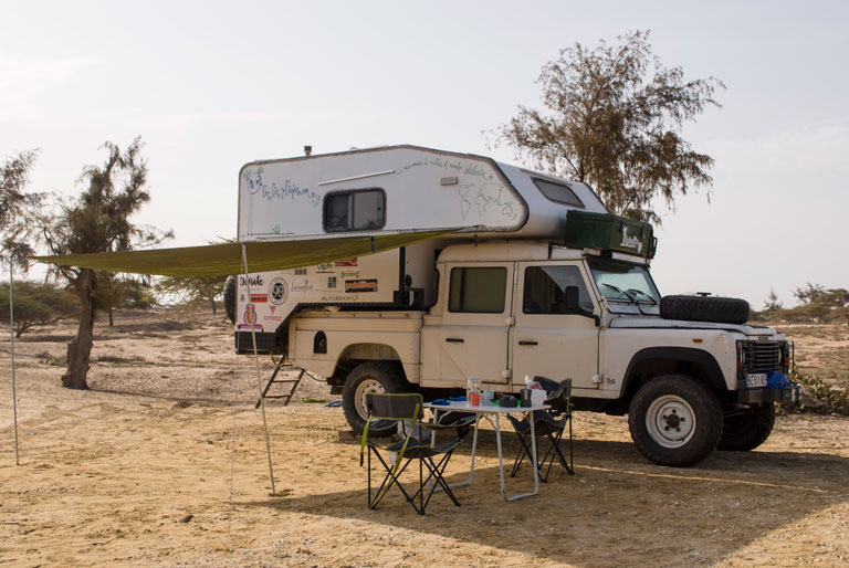 En abril de 2017 salimos de Utiel (Valencia) a conocer el mundo sin fecha de vuelta a lomos de «Rocinante»: un Defender 130 Tdi del año 93, en cuya caja lleva acoplada una célula habitable.